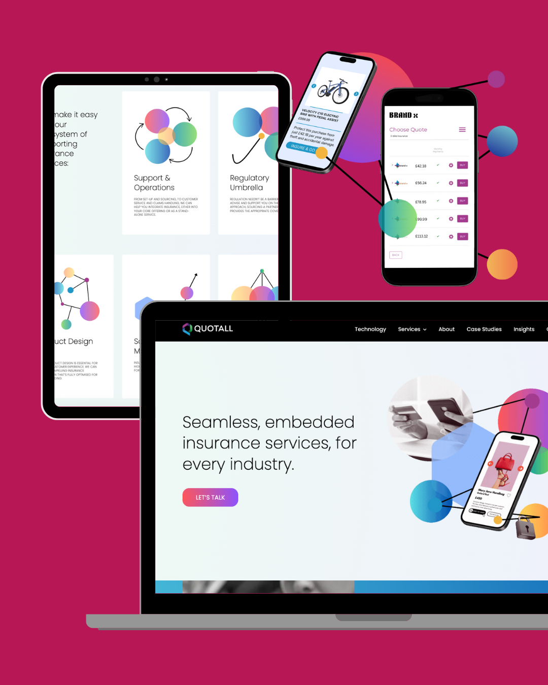 Quotall, an embedded insurance company, approached me to create a responsive and modern website. Not only did I deliver a site with streamlined navigation and engaging copy, I also curated a suite of iconography to showcase their multitude of services in a cohesive and engaging way.